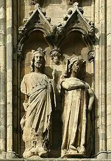 En 1290, Éléonore de Castille meurt et Édouard Ier d’Angleterre, son époux, l’honore avec une élégante procession funèbre. Après son embaumement, ce qui au XIIIe siècle implique une éviscération, les organes de la reine sont enterrés en la cathédrale, où le roi a installé une réplique de la tombe royale de l’abbaye de Westminster. La pierre tombale existe encore, même si l’effigie, détruite au XVIIe siècle, a été remplacée par une copie au XIXe siècle. Deux statues sur la façade de la cathédrale sont supposées représenter Edward et Eléonor, mais elles ont été fortement altérées lors des rénovations du XIXe siècle et n’ont probablement pas été à l’origine représentatives du couple royal.