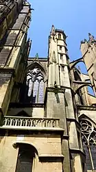 De 1440 à 1443, l'évêque Conrad Bayer de Boppart fait reconstruire par Jean de Commercy la chapelle d'Adhémar de Montheil dite chapelle des évêques. En 1468, un incendie ravage la toiture mais épargne le beffroi de la Mutte encore en bois[23], ce qui décide les bourgeois messins à reconstruire en pierre la partie supérieure de la tour de la Mutte, beffroi municipal. Cette tour, ainsi que la tour du Chapitre au Nord, est longtemps restée coiffée d’un colombier de bois. Hannes de Ranconval le remplaça de 1478 à 1481 par une flèche de style gothique flamboyant.