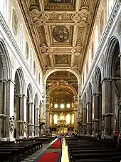 L'intérieur est de structure gothique, à trois nefs, compte de nombreuses chapelles latérales, dont beaucoup ont encore leur aspect gothique d'origine, une abside du XVIIIe siècle, la cathèdre de l'évêque en marbre et les tombes de plusieurs personnages illustres, dont saint Aspreno, le premier évêque de la ville. Le plan est en croix latine ; les trois nefs sont séparées par une séquence de huit piliers de chaque côté, dans lesquels sont incorporés les fûts des anciennes colonnes romaines, sur lesquels reposent des arcs brisés, décorés de stuc et de marbre.