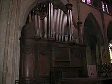 Dans le chœur, l’orgue de Cavaillé-Coll installé en 1867 a été détruit par le bombardement de 1944. Un instrument neuf le remplacera en 1978. Son buffet réutilise en partie, les anciennes boiseries des stalles du chœur.