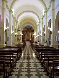 La façade est de style néoclassique italien avec deux tours-clochers. Les trois portes de la façade sont ornées d'antiques clous de l'époque coloniale. Une autre porte donne accès à l'édifice du côté Ouest. On remarque un buste du cardinal Fasolino à l'entrée droite principale. La nef centrale est voûtée en plein cintre et les nefs latérales d'une voûte d'arêtes.