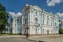 Il porte le nom d'Institut Smolny et eut une importance dans l'histoire de Russie. L'Institut servit notamment de quartier général à Lénine et aux bolcheviks pendant la révolution de 1917[2].
