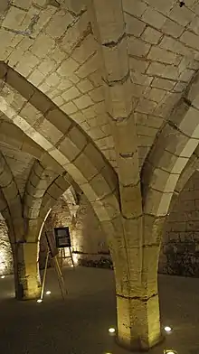 Les caves montrent trois phases de construction, aux XIIIe, XVIe et XVIIIe siècles mais pour un but de conservation des denrées pour les foires se passant sur l'actuelle place Foch.