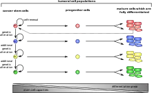 Le concept de hiérarchie des tumeurs affirme qu'une tumeur est une population hétérogène de cellules mutantes, qui partagent toutes certaines mutations, mais varient en fonction d'un phénotype spécifique. Une tumeur héberge plusieurs types de cellules souches, des cellules présentant un avantage sélectif pour l'environnement spécifique et d'autres cellules moins prospères. Ces lignées secondaires peuvent être plus avantagées dans d'autres environnements, ce qui permet à la tumeur de s'adapter, y compris à une intervention thérapeutique. Si ce concept est correct, il a une incidence sur les régimes de traitement spécifiques des cellules souches cancéreuses[46]. Une telle hiérarchie compliquerait les tentatives visant à en déterminer l'origine.
