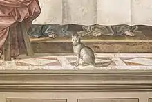 On croit généralement que Domenico, à cette époque au sommet de sa popularité et recevant des commandes de toutes parts, n'a fait que préparer le dessin (avec un décor similaire au Cénacle d'Ognissanti), confiant l'essentiel de la réalisation picturale à son frère Davide et à son beau-frère Sebastiano Mainardi.