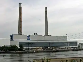Une centrale électrique est un site industriel destiné à la production d'électricité. Les centrales électriques alimentent en électricité, au moyen du réseau électrique, les consommateurs, particuliers ou industriels éloignés de la centrale[N 1]. La production d'électricité y est assurée par la conversion en énergie électrique d'une énergie primaire qui peut être soit mécanique (force du vent, force de l'eau des rivières, des marées…), soit chimique (réactions d'oxydoréduction avec des combustibles, fossiles ou non, tels que la biomasse), soit nucléaire, soit solaire.