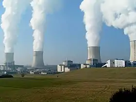 Les centrales nucléaires utilisent également des cycles de conversion thermodynamique : dans le réacteur nucléaire, l'énergie obtenue à la suite de la réaction de fission de l'uranium et du plutonium est la source de chaleur utilisée. Un circuit primaire permet de refroidir le réacteur et de transférer la chaleur dégagée à un générateur de vapeur (chaudière) qui produit la vapeur d'eau alimentant la turbine à vapeur, comme dans une centrale thermique conventionnelle. Actuellement, les centrales nucléaires produisent environ 15 % de l'électricité mondiale. Elles n'émettent pas de dioxyde de carbone (CO2) contrairement aux centrales conventionnelles à flamme, mais elles engendrent des déchets radioactifs, qui doivent être traités ou stockés, et le risque d'accident, comme dans toute entreprise, ne peut être exclu. La probabilité d'occurrence d'un tel accident, sur les centrales modernes, est sujette à débat.