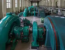 Six aqueducs de 430 m de longueur avec un diamètre qui diminue légèrement vers l'aval 2 m, distribuent l'eau vers les huit turbines de la chambre des machines. Le diamètre de ces conduites va diminuant, de 2,25 m en haut à 1,85 m au niveau de la salle des machines. L'épaisseur augmente au contraire de 10 mm à 27 mm. La salle des machines, longue de plus de 100 m, est décalée par rapport à l'axe des conduites pour évitée qu'elle soit sinistrée en cas de rupture d'une conduite.