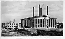 L'équipement de production d'électricité comprenait huit chaudières à tubes d'eau d'une capacité de production de vapeur de 75 000 livres (34 000 kg) par heure, disposées en paires, partageant une aspiration d'air et des cheminées (hauteur de 166 pieds (51 m)). Les chaudières étaient conçues pour produire de la vapeur surchauffée à 315 psi (21,4 atm) à 700 °F (371 °C). La section turbine/générateur comprenait deux turbines à réaction triphasées à trois étages tournant à 3 000 tr/min, entraînant des alternateurs d'une puissance continue de 19 MW. Les alternateurs produisaient un courant alternatif triphasé de 50 Hz à 11 kV, qui était élevé à 33 kV par deux ensembles de trois transformateurs monophasés d'une puissance de 25 MW par ensemble.