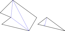 Le centre de masse d'une plaque polygonale peut donc être déterminée en découpant le polygone en triangles, en construisant le centre de masse de chaque triangle et en calculant chacune de leurs aires , le centre de masse est alors le barycentre du système pondéré . On verra dans les exemples que l'on peut même se passer du calcul des aires en utilisant des propriétés d'alignement.
