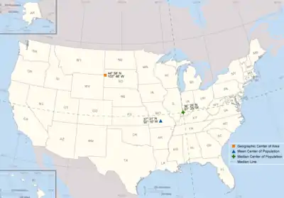- (en) « Position of the Geographic Center of Area, Mean and Median Centers of Population: 2010 »(Archive.org • Wikiwix • Archive.is • Google • Que faire ?) [PDF].