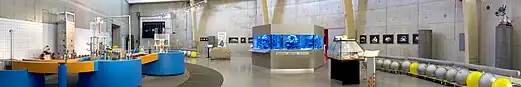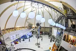 Les expositions du hall de la technologie expose des réalisations technologiques qui ont facilité notre quotidien[2]. Les visiteurs peuvent explorer et tester par eux-mêmes le fonctionnement des lois de la physique : faire du vélo le long d'une corde, tourner dans un dispositif d'entraînement d'astronaute ressemblant à un tambour de machine à laver, découvrir les bras robotiques utilisés dans les usines automobiles et expérimenter des expositions d'ombres et de lumières.
