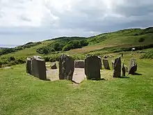 - (en) Cet article est partiellement ou en totalité issu de l’article de Wikipédia en anglais intitulé « Recumbent stone circle » (voir la liste des auteurs).