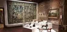 La première partie du musée retrace l'histoire de la chasse au vol (fauconnerie) grâce à plusieurs objets d'art dont une collection de chaperons, une tapisserie du XVIIe siècle rappelant les chasses pratiquées à la Renaissance ainsi qu'un traité de fauconnerie néerlandais (traduit en français).