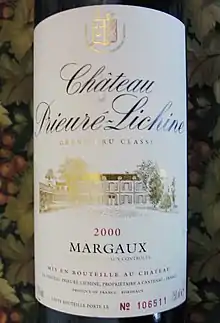 - « Château Prieuré-Lichine », un margaux grand cru classé, le grand vin du domaine, élevé 16 à 18 mois en fûts de chêne, bénéficiant d'une capacité de garde de 20 à 30 ans ;