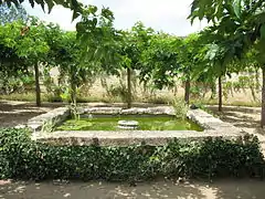 - le « jardin de méditation » entourant « la maison en if » face à la fresque, inspirée de Saint François d'Assise parlant aux oiseaux de Giotto ;