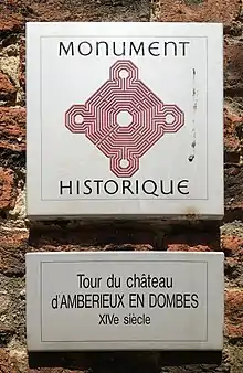 |   Le donjon (en état) du château d'Ambérieux-en-Dombes. | |
