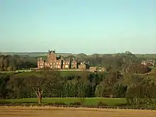 Le château d'origine, une tour pele, est autrefois un fief de la famille Home. Ce château est capturé par les Anglais en 1497, et l'église voisine est le théâtre de la négociation ultérieure du traité d'Ayton, signé le 30 septembre 1497. La tour est remplacée par un manoir classique, qui brûle en 1834[1].