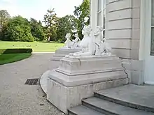 Une des maîtresses du prince, Rosalie Duthé, aurait prêté ses traits aux sphinges en marbre ornant la façade sur jardin[20].