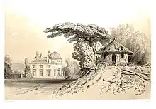 |   Le château de Bagatelle vu du jardin à l'anglaise. | ||