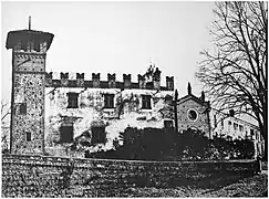 Les ruines du château, qui remontent au XIIe siècle, furent restaurées vers le milieu du XIXe siècle par la famille Pinchia. Le bâtiment fut d'abord restauré une seconde fois par Emilio Pinchia, homme politique, écrivain et poète. Les travaux furent menés sous la direction de l'architecte Ottavio Germano, collaborateur du plus célèbre Alfredo d'Andrade[1].