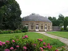Dans le parc, une orangerie se signale par un style néoclassique. Le tracé de sa façade est convexe. Elle est coiffée d'un toit en ardoises, épousant la même courbe et dont le sommet est arrondi. De grandes baies se succèdent alternant avec des fenêtres surmontées d'un oculus. Les grilles de l'entrée sont aussi classées. Le parc est clos et possède des pièces d'eau.