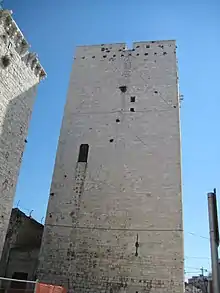 Également du côté nord, entre l'église du Purgatoire et le cimetière adjacent, un atelier d'ébéniste a été créé, qui a ajouté quelques ajouts, mais sans modifier la structure des murs. Ce qui reste du château a fait l'objet de travaux de restauration depuis 1982, interrompus à plusieurs reprises, et actuellement en cours. Avec le début des travaux de restauration, conçus par la surintendance du patrimoine architectural et paysager des Pouilles, certains chercheurs locaux ont attiré l'attention sur le rôle que le château et la tour principale ont joué dans la ville et sur son territoire, ainsi que sur l'aspect culturel. potentiel que ce complexe peut offrir dans le futur.