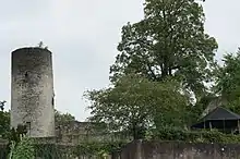 On peut voir très nettement au sommet de la tour cylindrique la surélévation au XIVe ou XVe siècle de la tour crénelée du XIIIe siècle[9].
