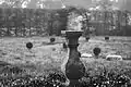 - le miroir d'eau, canal construit à l'est du jardin à la française et du logis. Ce miroir d'eau est flanqué de deux exèdres en banquette de pierre ;