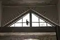Sommet du tronc d'arbre constituant le noyau de l'escalier créé en 1694 pour compléter l'escalier de 1405. Le noyau de l'escalier est constitué d'un seul tronc d'arbre de 10 mètres de hauteur. Les marches sont encastrées tout au long de l'arbre, du sol jusqu'à l'étage des logements du personnel.