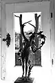 La face simiesque du Diable commande l'entrée de la porte de la tour-escalier.