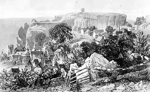 Le château occupait le sommet d'un plateau basaltique, auquel on accède par un escalier taillé dans une faille.