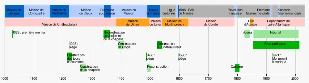 La baronnie de Châteaubriant revient à la maison de Montmorency au milieu du XVIe siècle, puis à la maison de Condé au début du XVIIe siècle. Témoin de plusieurs sièges pendant les Guerres de Religion, le château est ensuite délaissé par ses propriétaires qui y viennent très rarement. Après la Révolution française, le château connaît plusieurs ventes et il est finalement transformé en cité administrative par le département de Loire-Inférieure qui en fait acquisition en 1853. Depuis la fermeture du tribunal en 2009 et le départ des services sous-préfectoraux en 2012, le château est entièrement consacré au tourisme.