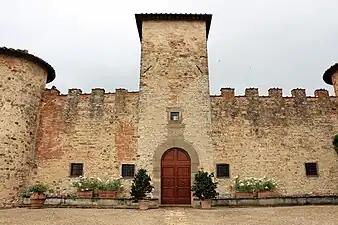 Extérieurement, il ressemble à un bloc quadrangulaire avec quatre tours cylindriques placées aux angles. Ils ont été ajoutés après le milieu du XVe siècle, comme dans le château de Meleto situé près de Gaiole in Chianti.
