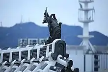 - Les shachi-gawara (鯱瓦), une variante d'un des neuf fils du dragon, chīwěn, de la mythologie chinoise, connu sous les appellations Shachihoko, ou bien encore Kinshachi au Japon. Ils ressemblent à des poissons et qui ornent le toit sont des animaux mythiques protégeant, disait-on, du feu le toit du donjon.