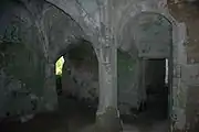 Une salle de garde (fin XVe siècle), dont la voûte repose sur un pilier, est installée sous cet escalier afin de contrôler le passage dans les galeries souterraines.