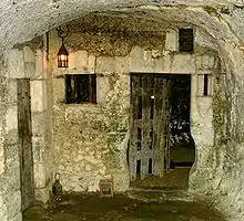 Sous la motte on trouve des habitats troglodytiques[3]. Des galeries souterraines courent sous le coteau et le château.