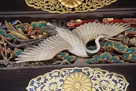 Détail d'une grue sculptée et peinte Détail d'une grue sculptée et peinte