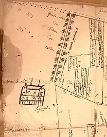- Les plans de 1813 ne sont pas explicites sur la présence de bâtiments longeant la pièce d'eau, au sud, en vis-à-vis du corps de ferme principal.