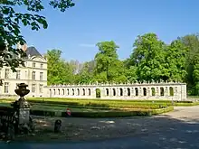 Le château de Raray et ses balustrades, sur la cour d'honneur à l'est. | ||||