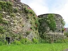 Le premier château est bâti sur un plan pentagonal allongé[1] qui a subsisté tout au long de l'histoire du site. Du château médiéval ne subsistaient, en 1867 que cinq tours[2] et quelques pans de remparts.