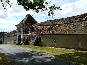 Le château de Segonzac, vu depuis le porche d'entrée | |