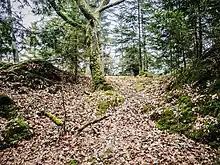 Le château est en effet situé en zone forestière sur une colline à l'ouest du village de Mitzach, bien que dépendant du territoire de Husseren-Wesserling.