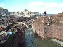 L'aile nord du château mesure environ dix mètres de largeur sur quarante mètres de longueur et est reliée à la tour Douglas. La partie ouest remonte au XIVe siècle et comprenait la grande salle, utilisée par le seigneur, et la salle basse, destinée aux paysans et transformée par la suite en celliers. Les marques du toit à deux pans de la salle sont encore visibles sur le mur intérieur de la tour Douglas. La partie est date elle du XVIe siècle et était composée d'un fournil et d'autres pièces privées qui se sont en partie écroulés dans la mer. Seule une petite partie de mur subsiste à l'est, comprenant une poterne d'accès à la mer via une faille dans la falaise[8]. Un puits profond de 32 mètres se situe dans la cour, et fut fouillé au XIXe siècle[9].