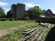 La basse-cour est, elle, composée de deux restes de bâtiments. Il s'agissait sans doute de bâtiments de confort, deux belles cheminées étant visibles ainsi que des latrines[21]. Les modifications apportées par les propriétaires successifs rendent compliquées toute identification.