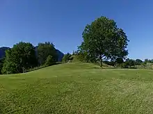 Le château était édifié à l'ouest du bourg actuel, au sommet de la Tourmotte[2], plateau en forme de pentagone irrégulier, orienté sud nord[3], à 420 m d'altitude, dominant la vallée de l'Isère[4].