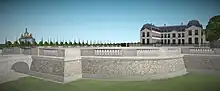 Vue depuis la terrasse supérieure de Villeneuve, avec le jeu visuel de la demi-lune et de la grille, vers 1710