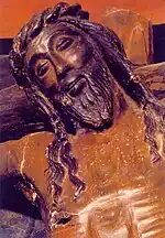 - Il s’y trouve un très intéressant crucifix connu sous le nom de Christ souriant. Taillé dans du bois de noyer, le crucifix date du XIIIe siècle. Il a ceci de particulier (avec le Christ de Lérins et un autre en Suisse) - que le Christ, bien que crucifié, est souriant. Une tradition locale prétend qu’il transpira du sang le jour où Saint François Xavier expira à Sancian, le regard tourné vers la Chine ().