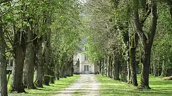 Le château, jouxté d'imposants communs, est couvert d'ardoises. A l'arrière, le parc conserve quelques parterres à la française. L'accès à la route est assuré par une large allée arborée précédée en bordure par un bassin cylindrique en pierre maçonnées à destination d'abreuvoir et de pédiluve, ombragé par deux rangées d'arbres imposants. Au nord-est du château et ses communs, se cache le menhir de Pierre Percée ou Pierre Fiche.