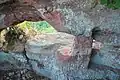 Entre Niedersteinbach et l'étang du Fleckenstein, sur la D 3, à la hauteur de la ferme de Froensbourg, suivre le sentier du Club vosgien, rectangle bleu.